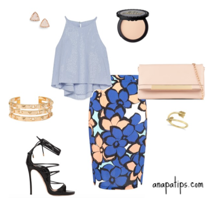 ¡Hola! Como siempre corriendo. Este es un post sobre un look. Mañana tengo la apertura de una tienda y no iré nomás como espectadora, soy ya parte de este nuevo proyecto (también está padrísimo para una galería, no tengo que asistir a ninguna inauguración, pero es bueno ya saber mis opciones). Así que me quede pensando en que me pondría (cada vez que sé que tengo un evento pienso en que me voy a poner, es demasiada emoción, y siempre es bienvenida una posibilidad de ir de compras). Así que este outfit es muy bueno para empezar, tiene una blusa cortita con brillo que se verá hermosa con la falda lápiz. Siempre cuando tienes más de dos prendas quieres hacer un balance, nunca toda aguada o toda super embarrada. Siempre agrego unos tacones increíbles (te dan un super extra), una bolsa bonita (la cadena es perfecta ya que quiero estar viendo la ropa y no cargando mi bolsa, de esta manera tengo las manos libres) y la joyería, siempre es importante. Este conjunto ayuda a crear la ilusión de curvas (la falda se desliza en tu cuerpo) y te enfoca en la parte más chica de tu cintura. Las chicas con busto grande tienen que evitar blusas con mucho vuelo y faldas muy altas que les hagan ver como si no tienen torso, así que cuidado. Este conjunto se verá increíble en todo tipo de cuerpos EXCEPTO en el de triángulo invertido (hombros más grandes que tu cadera), ya que los tirantes delgaditos te pueden hacer ver más ancha. También evítalo si estas inflamada o úsalo con una blusa más larga para que te tape más la panza y estés más gusto. ¡Pero te aseguro que con esto serás tú la pieza de arte!