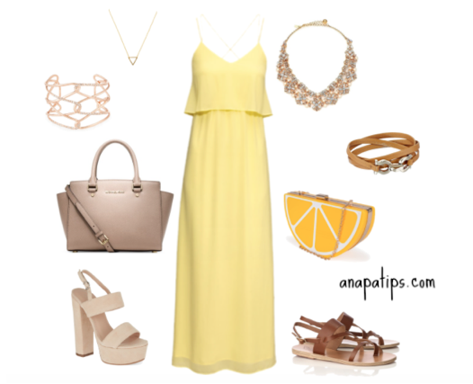 The shoes you wear will be determined by the dress length (you can always have it hemmed), so if its just right you can wear sandals or flats, if it is long on you, you will have to wear it with heels. Please no dragging it around, be sure to hem it to the right length, bring your heels to the tailor or tell a friend to help you with them, wear an average heel, because if you use the highest one you’ve got then you will have to wear it with those ones every single time.